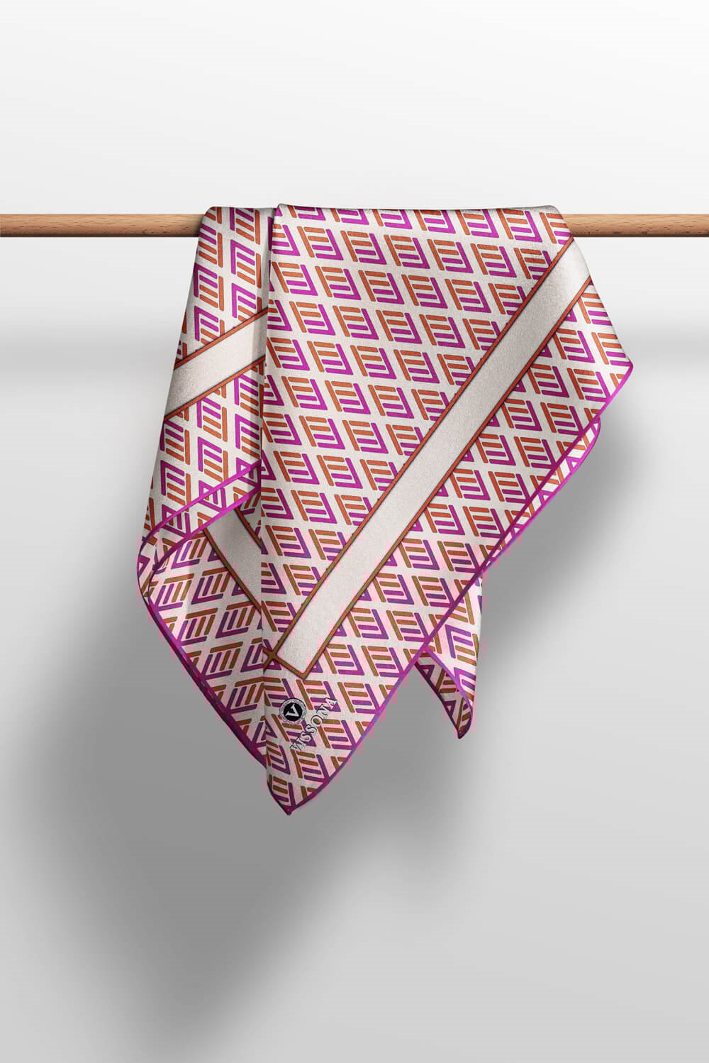 % 57 İPEK % 43 VİSKON Twill İpek Geometrik Desenli Fuşya - Turuncu Renkli 90x90 Eşarp Dikim Şekli : El Dikişi