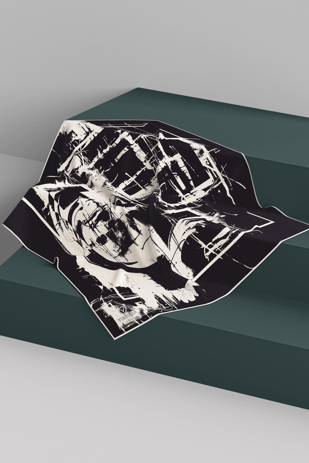 % 57 İPEK % 43 VİSKON Twill İpek Geometrik Desenli Siyah - Krem Renkli 90x90 Eşarp Dikim Şekli : El Dikişi