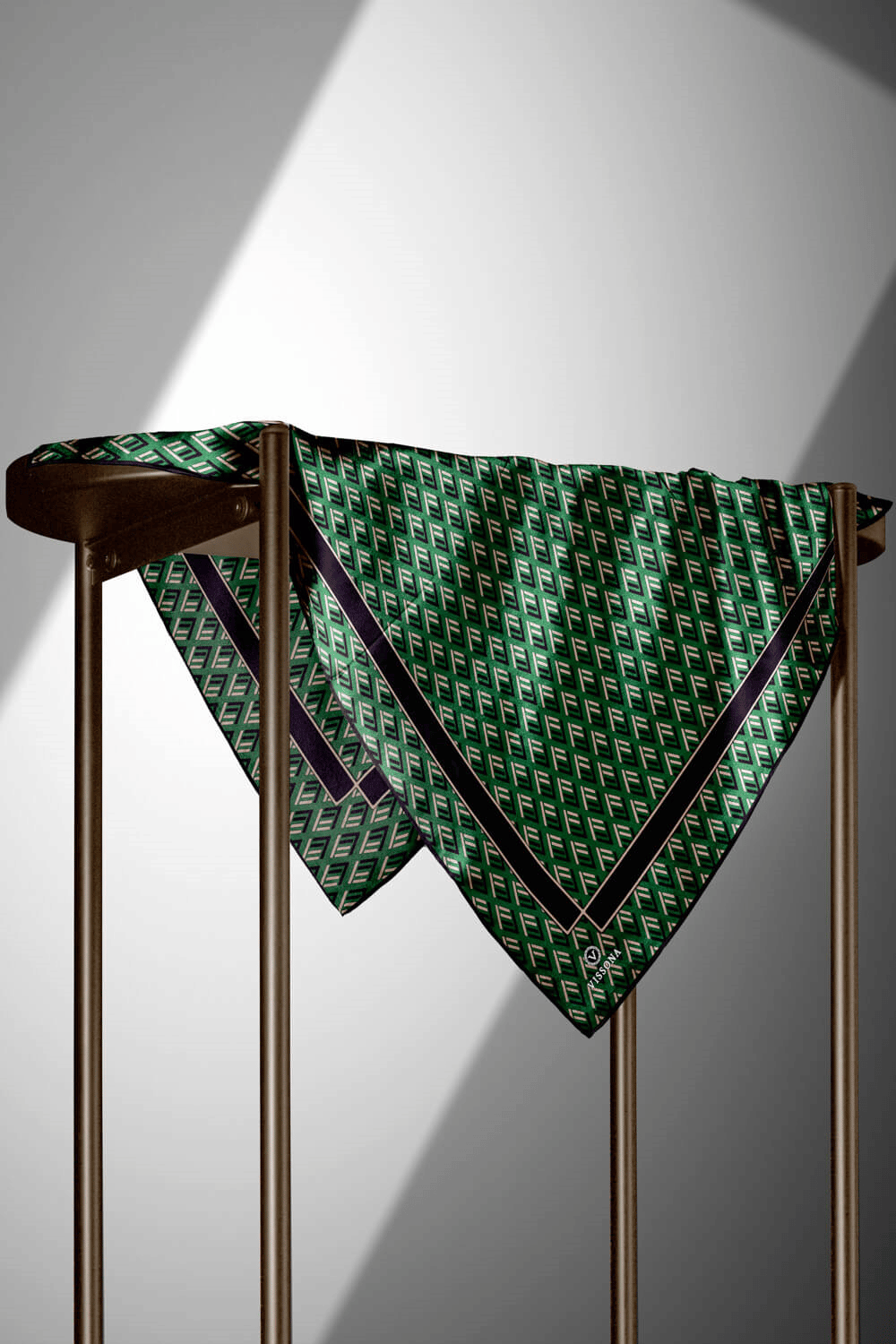 % 57 İPEK % 43 VİSKON Twill İpek Geometrik Desenli Zümrüt Yeşili - Siyah Renkli 90x90 Eşarp Dikim Şekli : El Dikişi