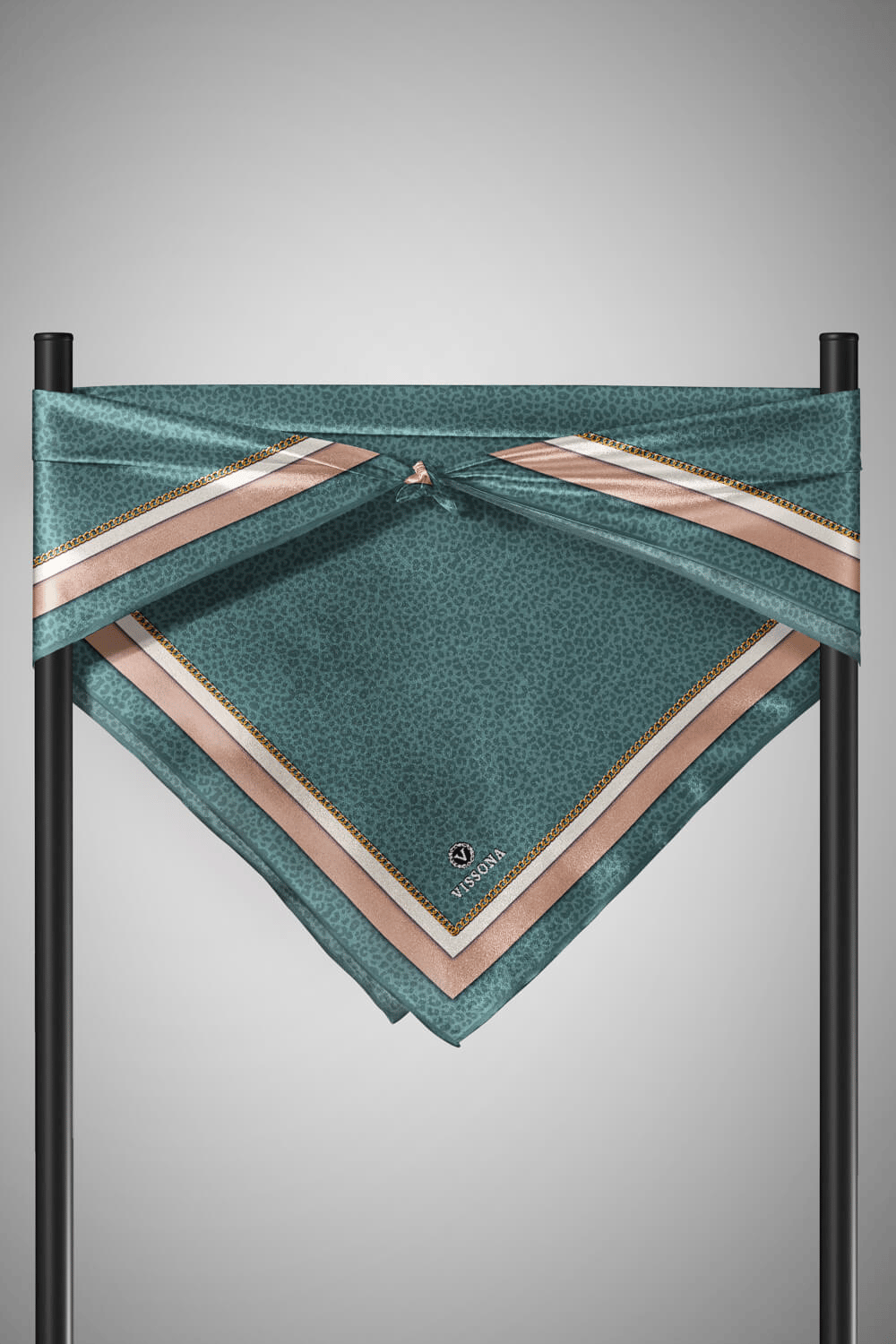 % 57 İPEK % 43 VİSKON Twill İpek Leopar Desenli Petrol Yeşili Renkli 90x90 Eşarp Dikim Şekli : El Dikişi