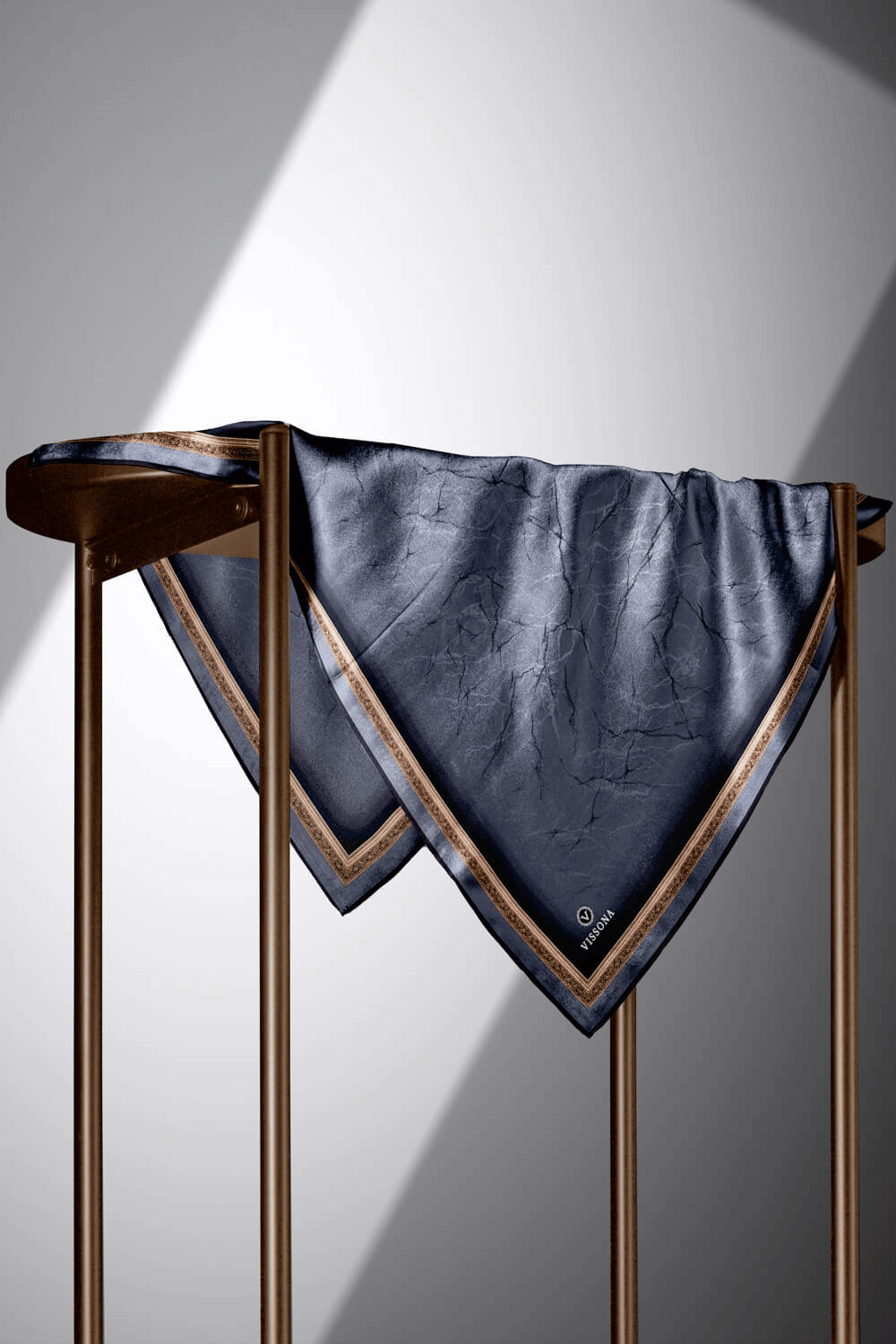 % 57 İPEK % 43 VİSKON Twill İpek Mermer Desenli Gri Renkli 90x90 Eşarp Dikim Şekli : El Dikişi