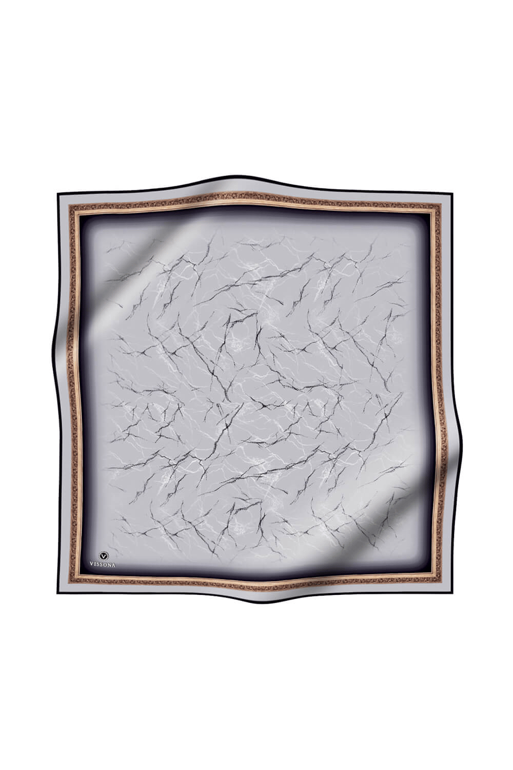 % 57 İPEK % 43 VİSKON Twill İpek Mermer Desenli Gümüş Renkli 90x90 Eşarp Dikim Şekli : El Dikişi (60307-V8)