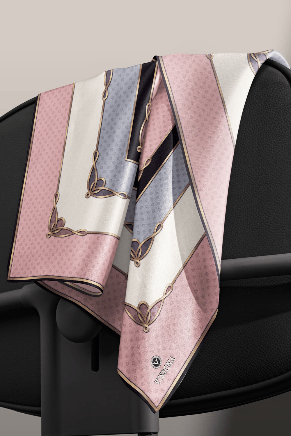 % 57 İPEK % 43 VİSKON Twill İpek Puantiyeli Ve Geometrik Desenli Pudra - Gri Renkli 90x90 Eşarp Dikim Şekli : El Dikişi