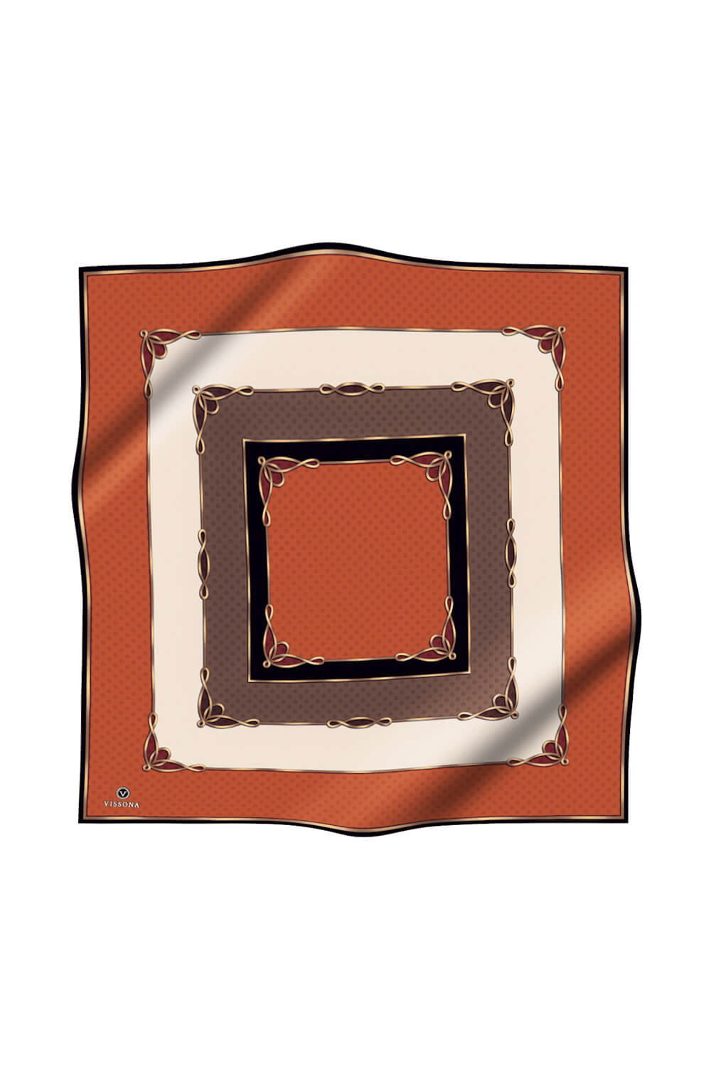 % 57 İPEK % 43 VİSKON Twill İpek Puantiyeli Ve Geometrik Desenli Taba - Vizon Renkli 90x90 Eşarp Dikim Şekli : El Dikişi