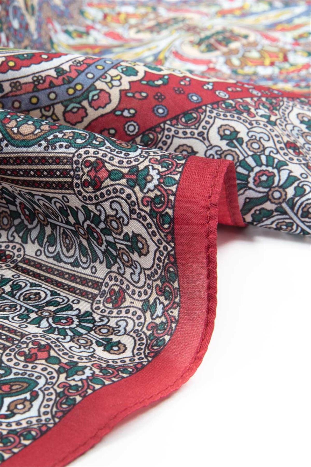 100% İpek Etnik Desenli Bordo - Gold Renkli 92x210 Şal (60656-6)