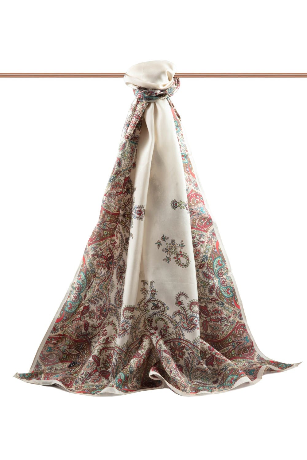 %100 İpek Etnik Desenli Krem Renkli 92x210 Şal