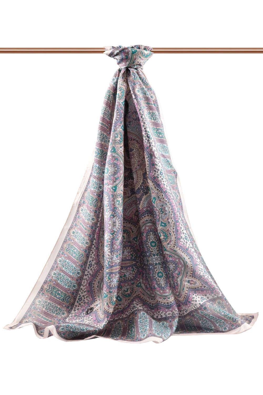 100% İpek Etnik Desenli Pudra - Gül Kurusu Renkli 92x210 Şal