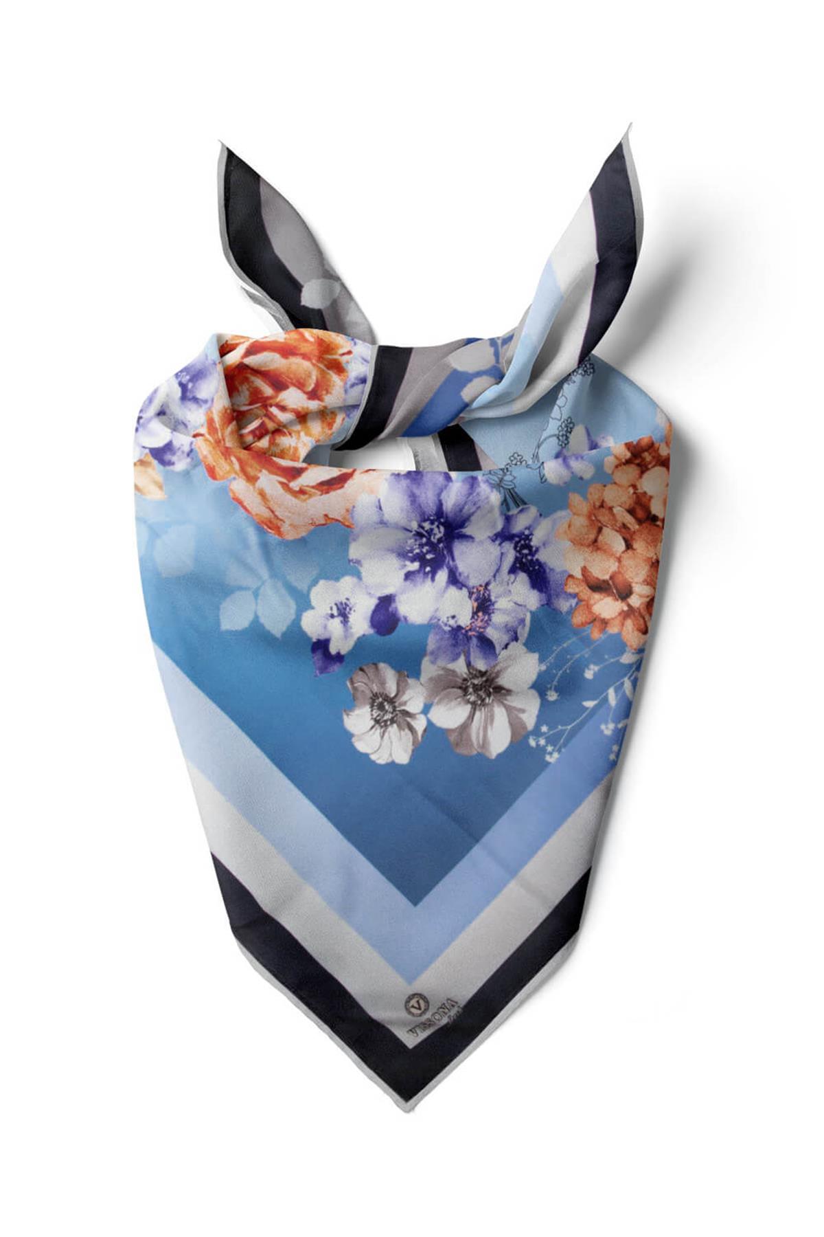 %100 İpek Kadın Desenli Bandana 80x80 (16578B2)