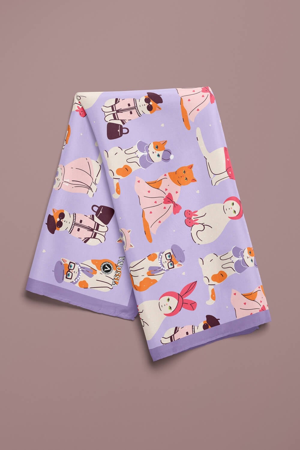 %100 İpek Süslü Kedi Desenli Kadın Bandana