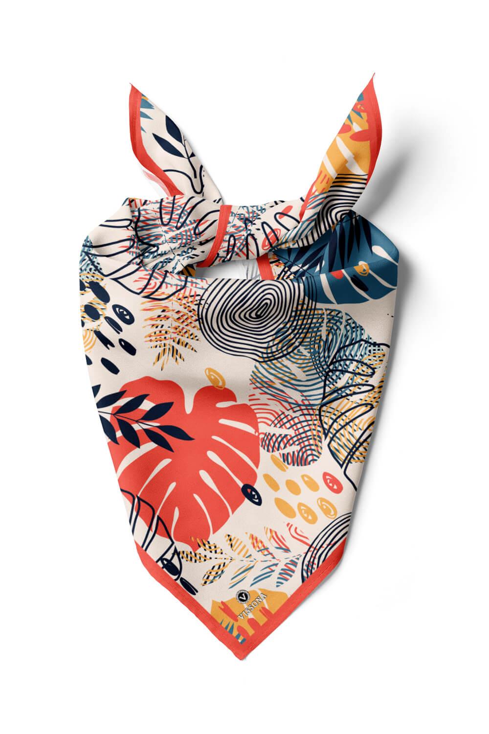 %100 İpek Yaprak Desenli Kadın Bandana (60594)