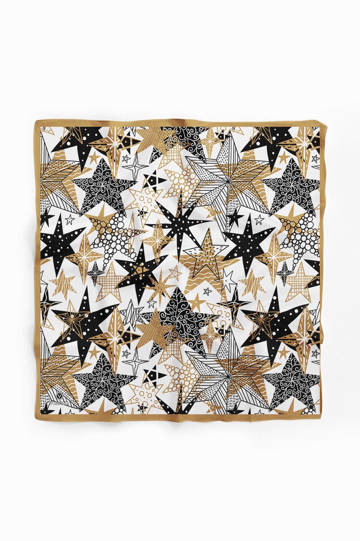%100 İpek Yıldız Desenli Kadın Bandana (60590)