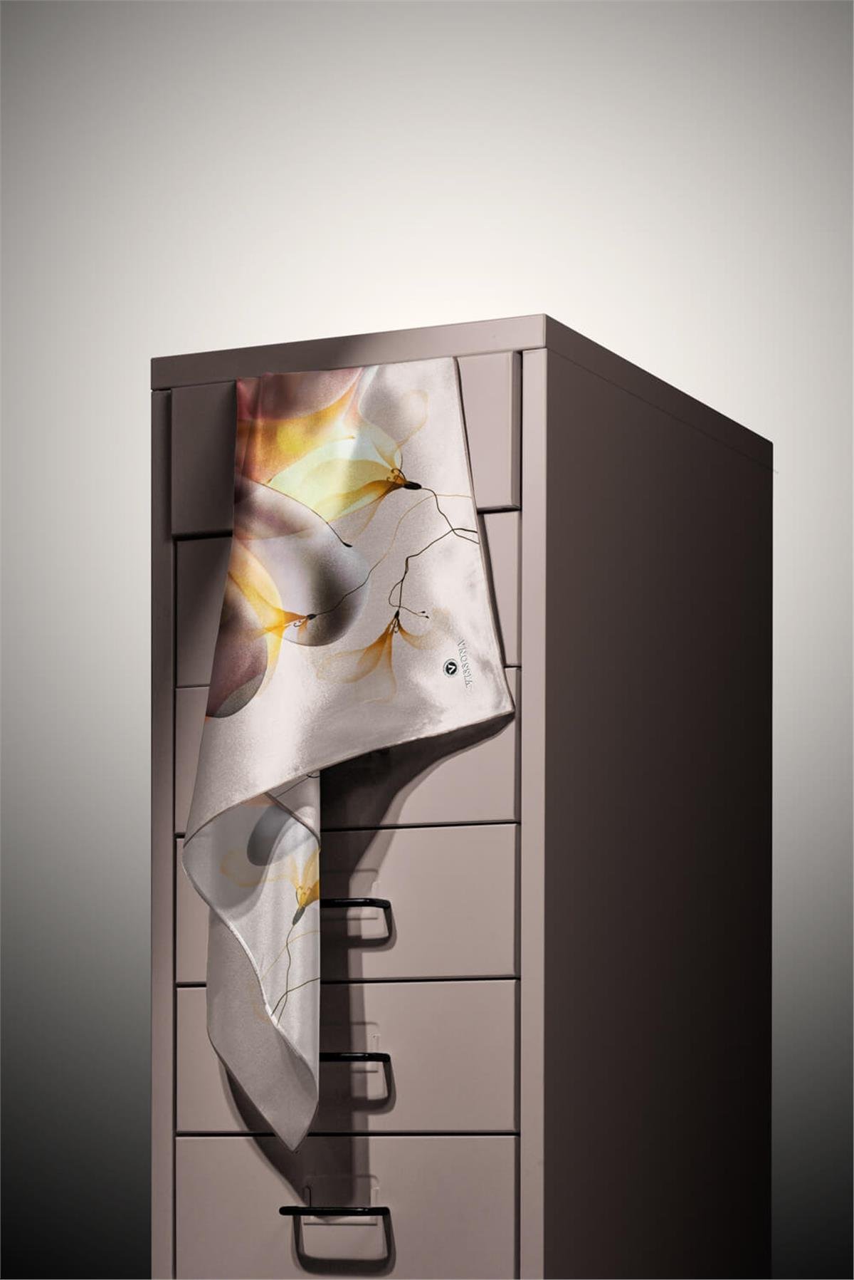 %100 Twill İpek Büyük Çiçek Desenli Bej - Gül Kurusu Renkli 90x90 Eşarp Dikim Şekli : El Dikişi (DGN50415-1)