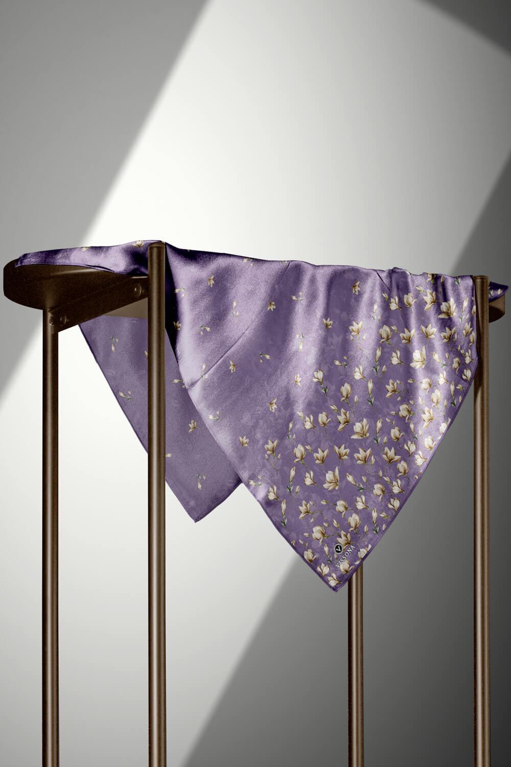 %100 Twill İpek Çiçek Desenli Lila Renkli 90x90 Eşarp Dikim Şekli : El Dikişi (51776-3)
