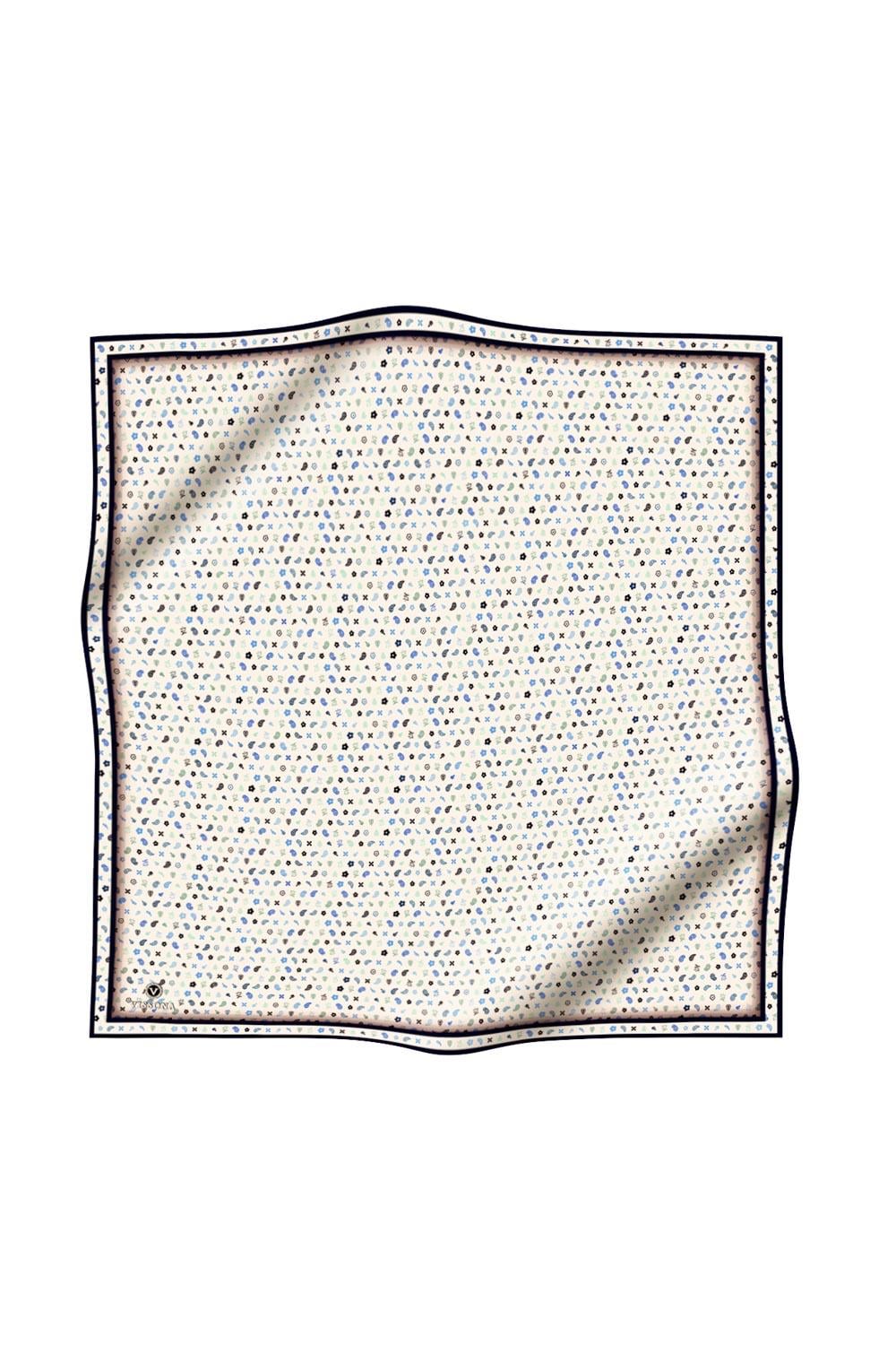 %100 Twill İpek Çıtır Desenli Krem - Lacivert Renkli 90x90 Eşarp Dikim Şekli : El Dikişi (61004-6)