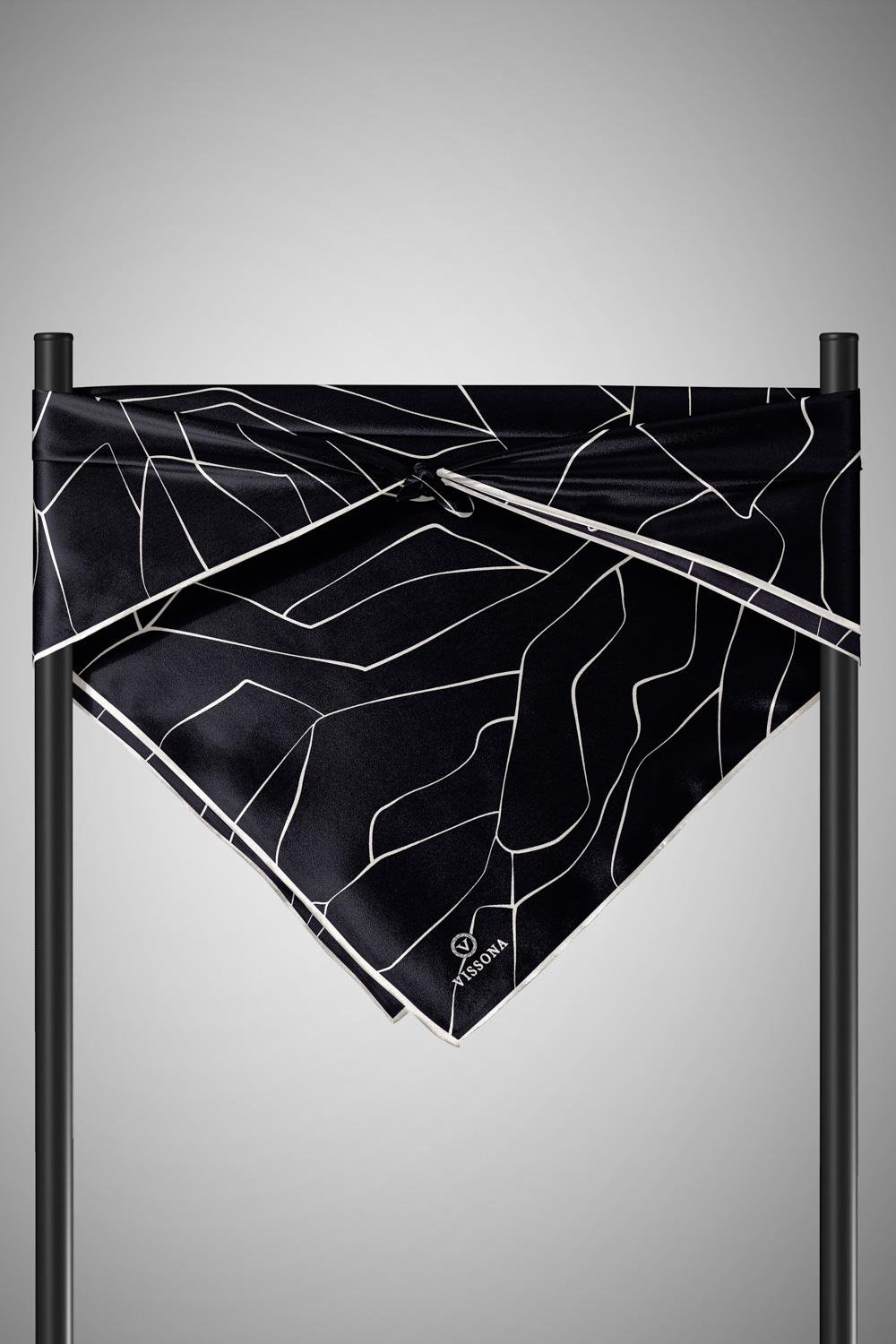 %100 Twill İpek Çizgi Desenli Siyah Krem Renkli 90x90 Eşarp Dikim Şekli : El Dikişi (60801-0001-0003)