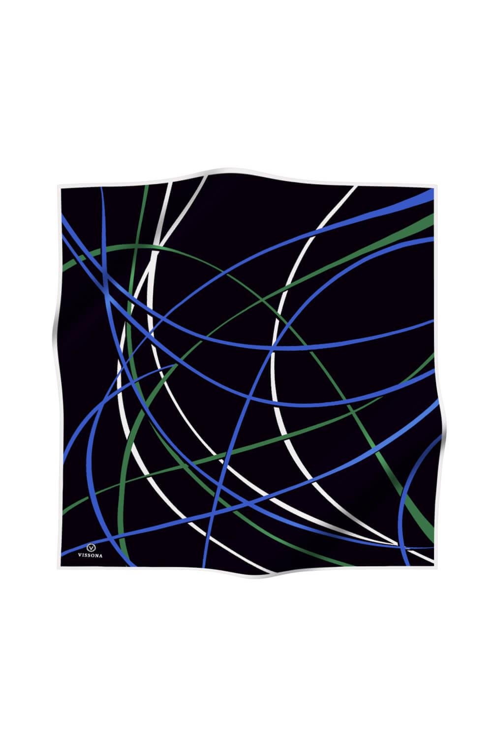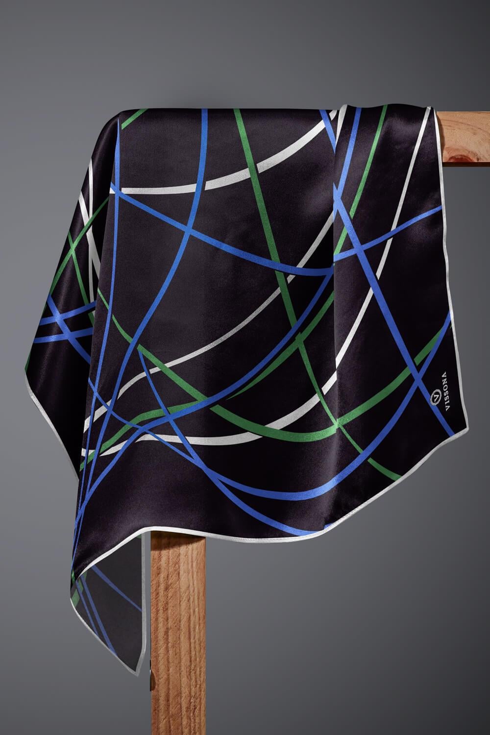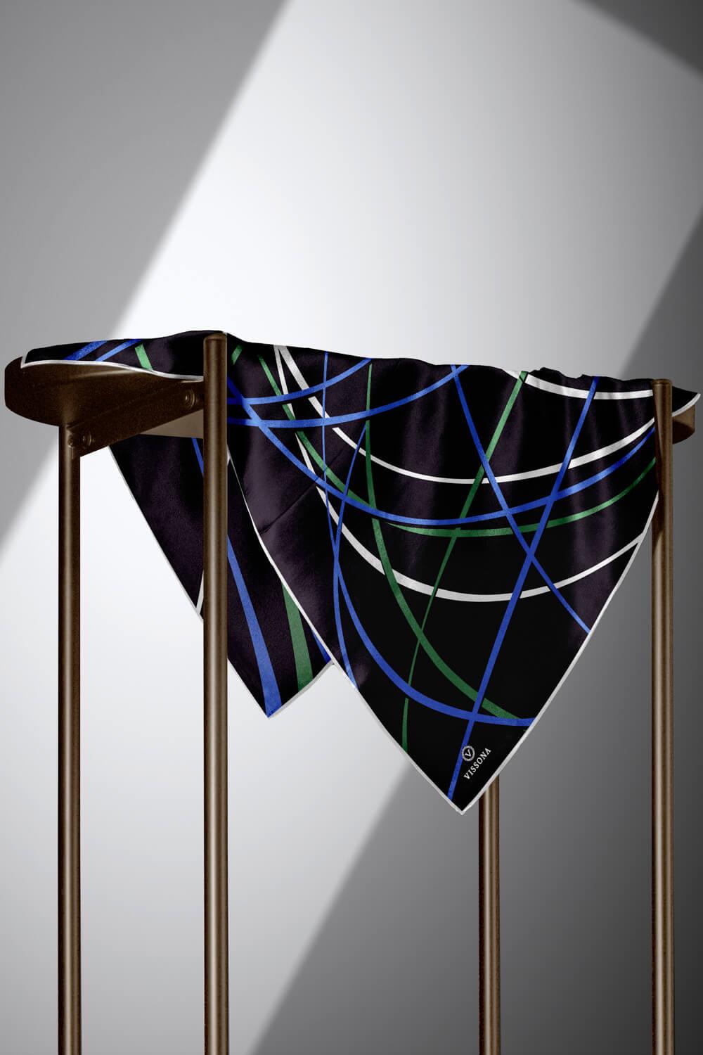 %100 Twill İpek Çizgili Desenli Saks - Zümrüt Yeşili Renkli 90x90 Eşarp Dikim Şekli : El Dikişi