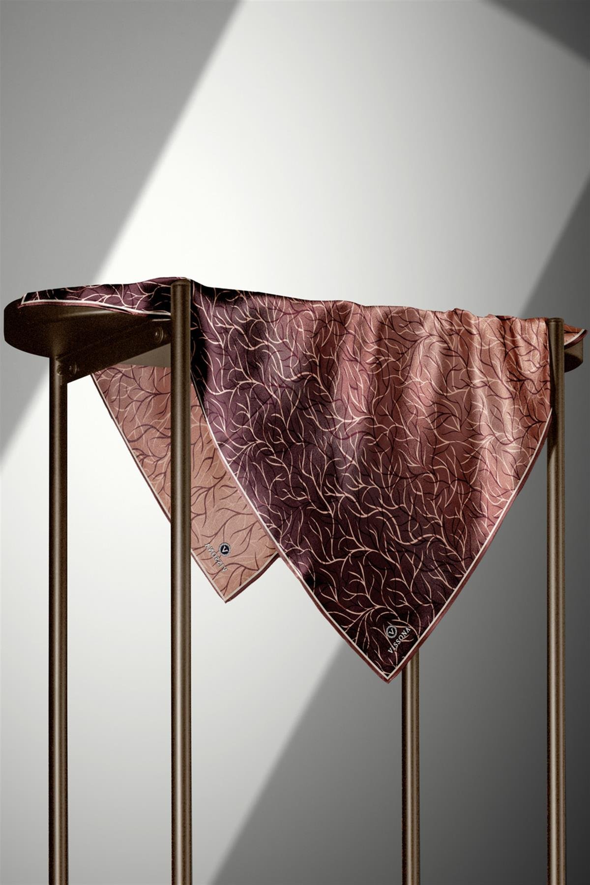 %100 Twill İpek Degrade Desenli Bakır Renkli 90x90 Eşarp Dikim Şekli : El Dikişi (61012-4)