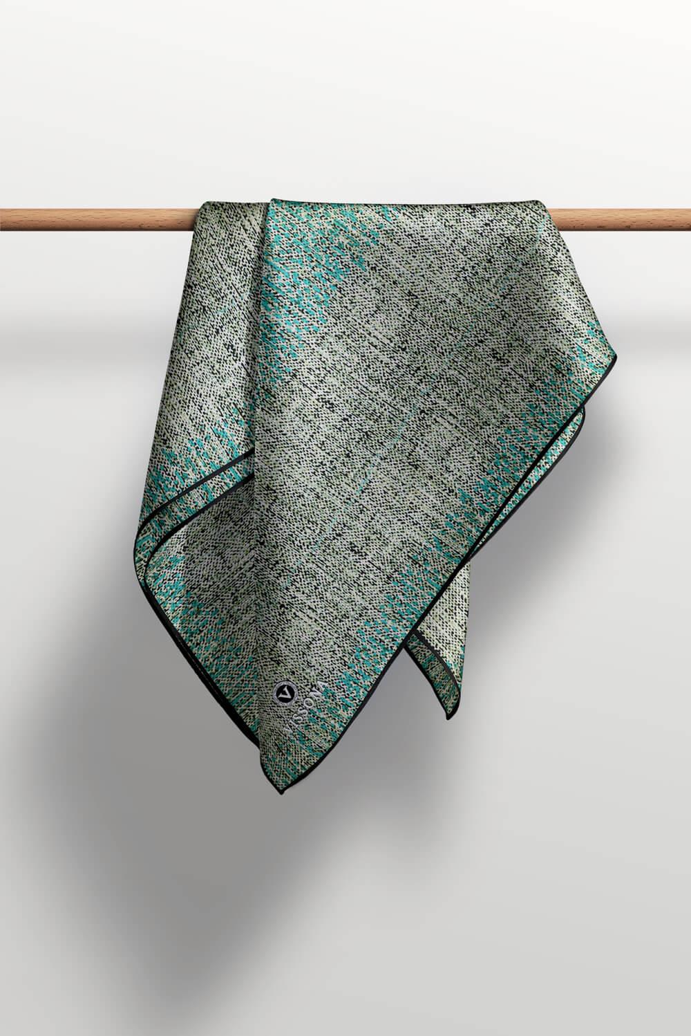 %100 Twill İpek Dokulu Desen Mint Yeşili - Su Yeşili Renkli 90x90 Eşarp Kenar Dikiş Şekli El Dikişli