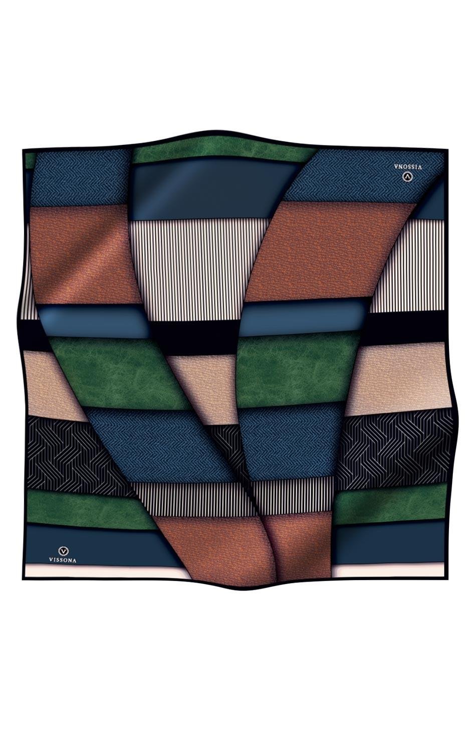 %100 Twill İpek Dokulu ve Geometrik Desenli Lacivert - Zümrüt Yeşili Renkli 90x90 Eşarp Dikim Şekli : El Dikişi (17459-8)