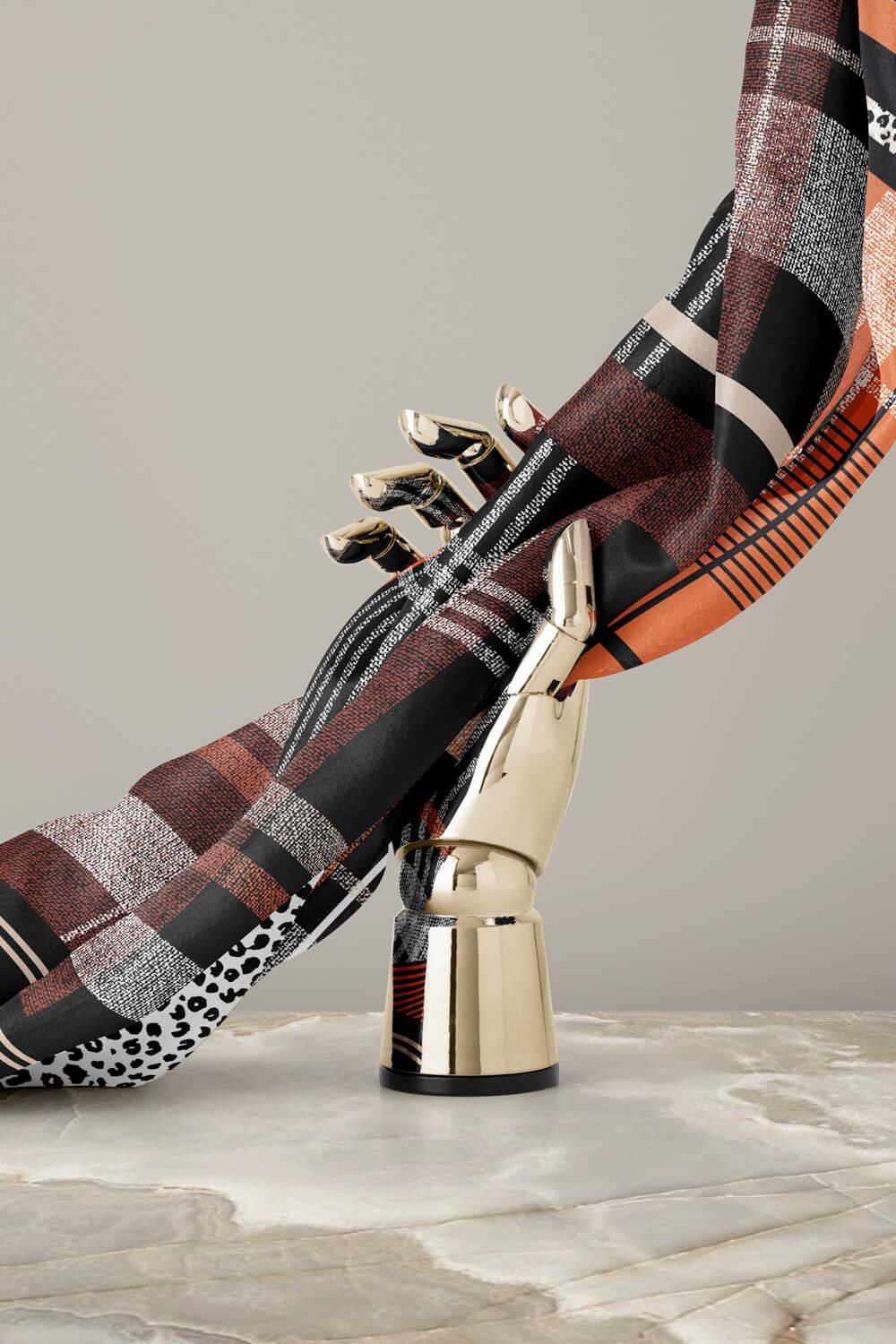 %100 Twill İpek Ekoseli Ve Leopar Desenli Siyah - Taba Renkli 90x90 Eşarp Dikim Şekli : El Dikişi