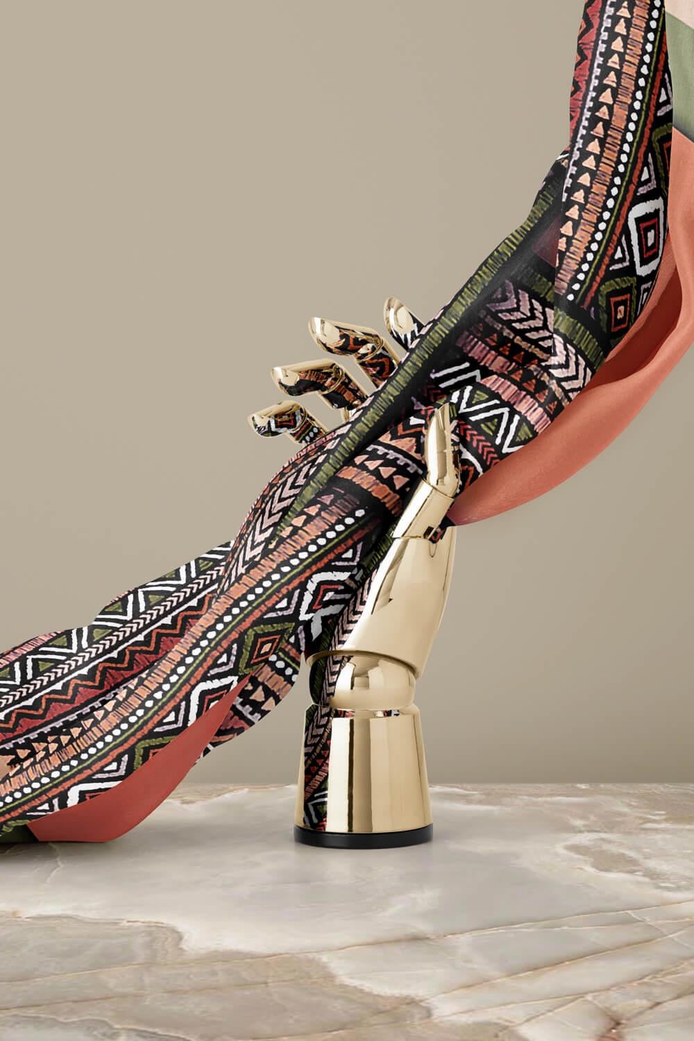 %100 Twill İpek Etnik Desenli Haki - Bakır  Renkli 90x90 Eşarp Dikim Şekli : El Dikişi