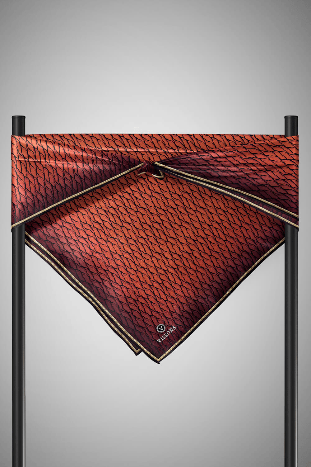 %100 Twill İpek File Desenli Taba - Siyah Renkli 90x90 Eşarp Dikim Şekli : El Dikişi