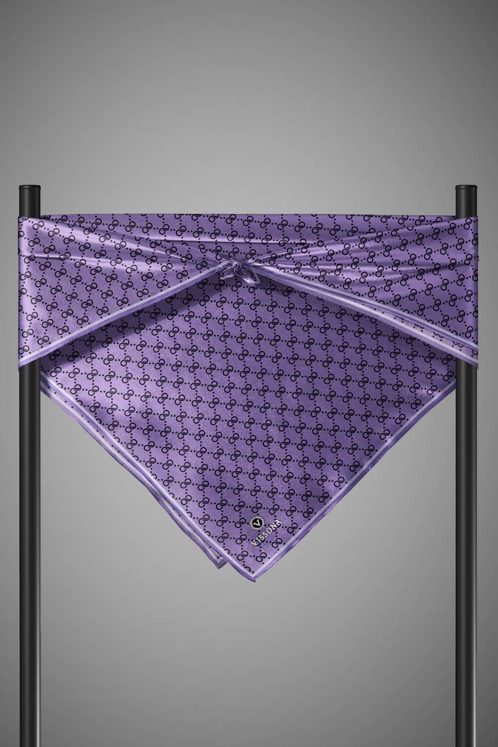 %100 Twill İpek Geometrik Desenli Lila Renkli 90x90 Eşarp Dikim Şekli : El Dikişi (60782-11)