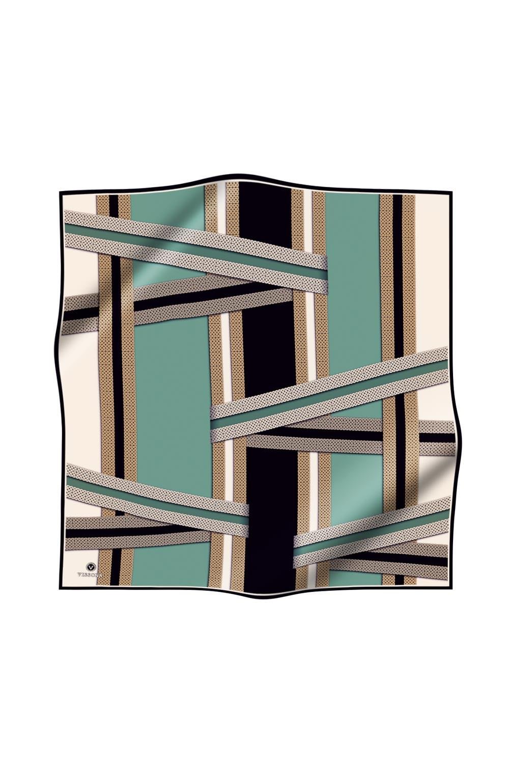 %100 Twill İpek Geometrik Desenli Siyah - Mint Yeşili Renkli 90x90 Eşarp Dikim Şekli : El Dikişi (10675-10)