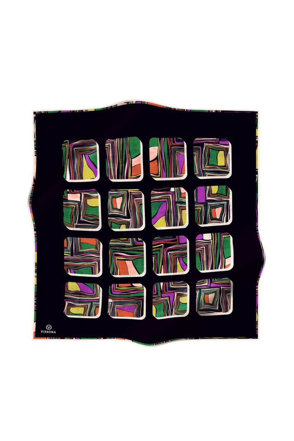 %100 Twill İpek Geometrik Kare Desenli Siyah - Zümrüt Yeşili Renkli 90x90 Eşarp Dikim Şekli : El Dikişi (51967-3)