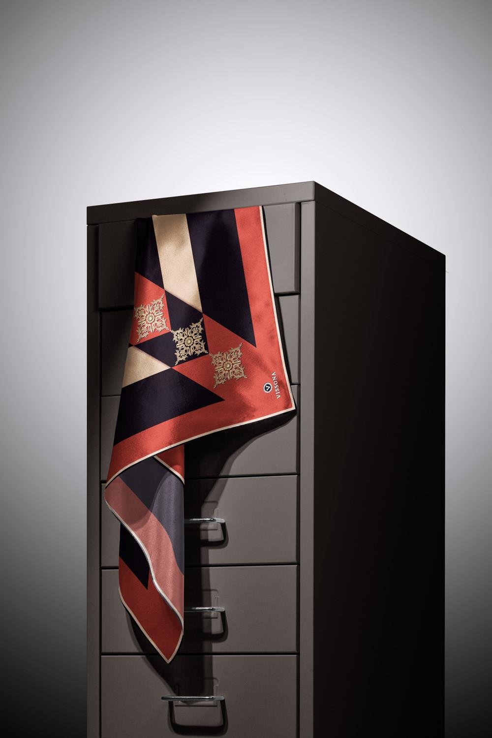 %100 Twill İpek Geometrik ve Barok Desenli Taba - Siyah Renkli 90x90 Eşarp Dikim Şekli : El Dikişi