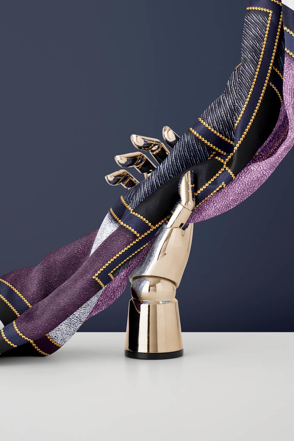 100% Twill İpek Gold Detaylı Kare Desenli Lacivert - Mürdüm Renkli 90x90 Dikim Şekli : El Dikişi