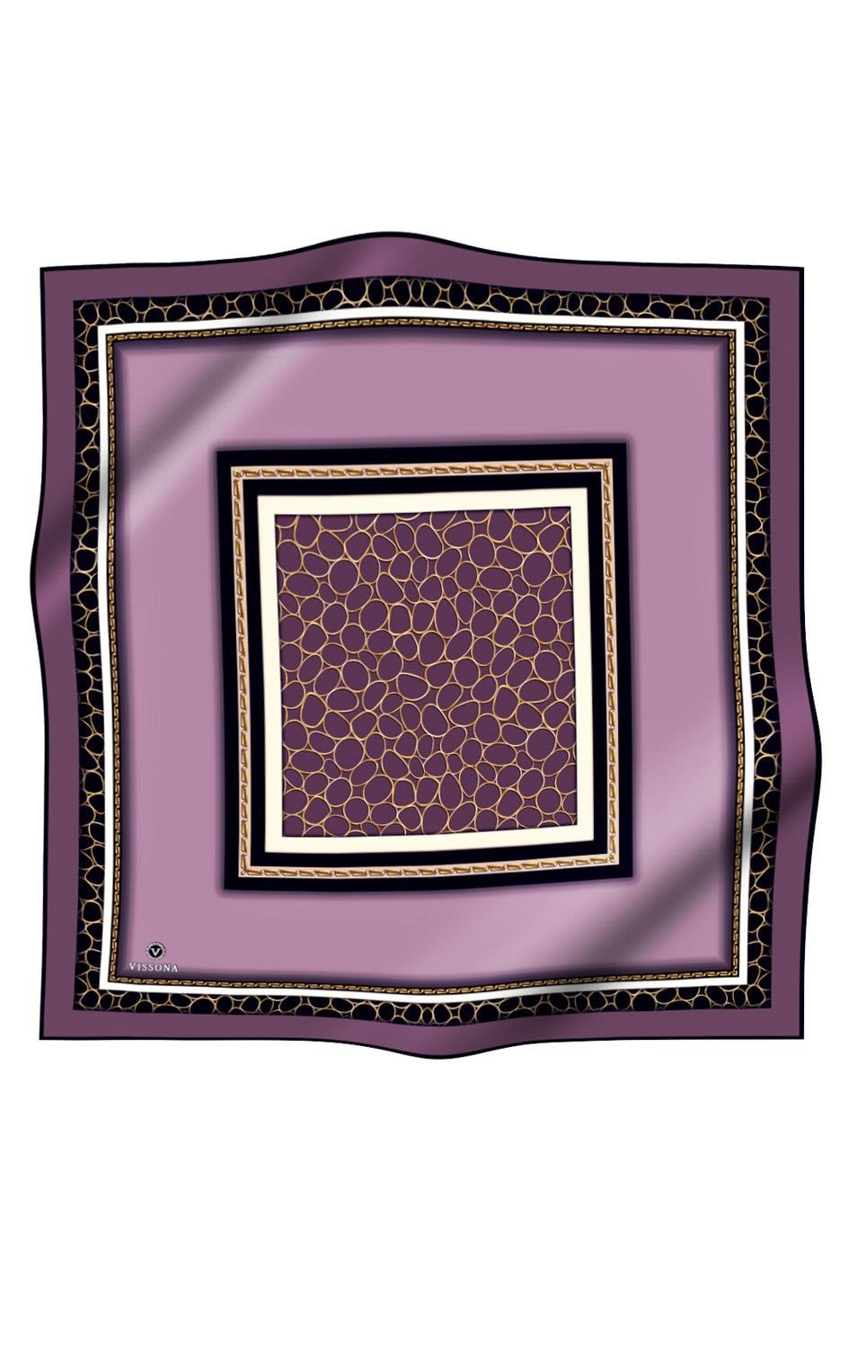 %100 Twill İpek Gold Halka Desenli Lila - Siyah Renkli 90x90 Eşarp Dikim Şekli : El Dikişi (17147-7)