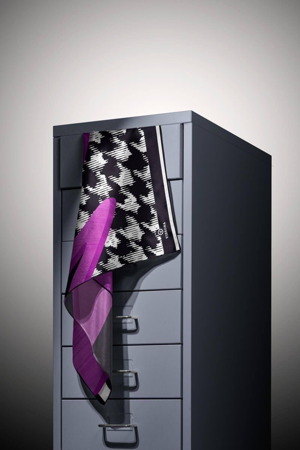 %100 Twill İpek Kazayağı Desenli Fuşya - Siyah Renkli 90x90 Eşarp Kenar Dikiş Şekli El Dikişli