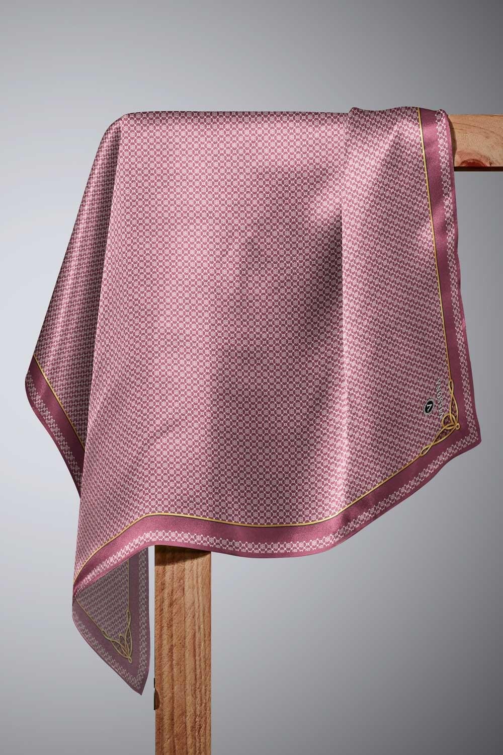 %100 Twill İpek Minik Motif Desenli Gül Kurusu - Krem Renkli 90x90 Eşarp Dikim Şekli : El Dikişi (60960-14)