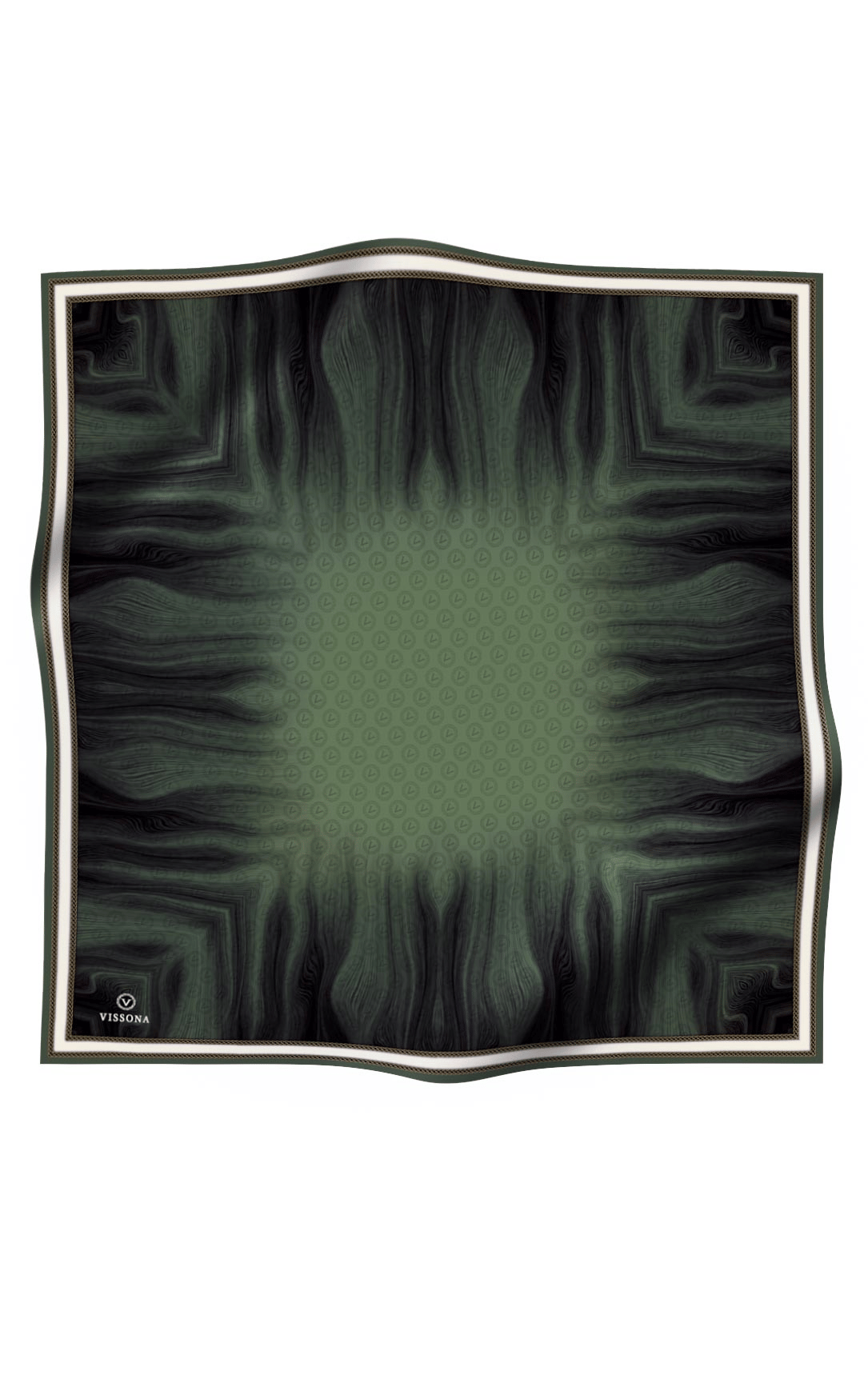 100% Twill İpek Monogram Desenli Haki Renkli 90x90 Dikim Şekli : El Dikişi Eşarp (10659-10)
