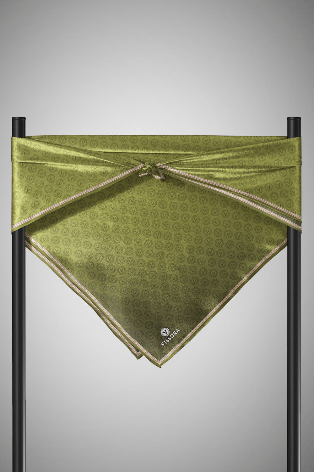 %100 Twill İpek Monogram Desenli Haki  Renkli 90x90 Eşarp Dikim Şekli : El Dikişi