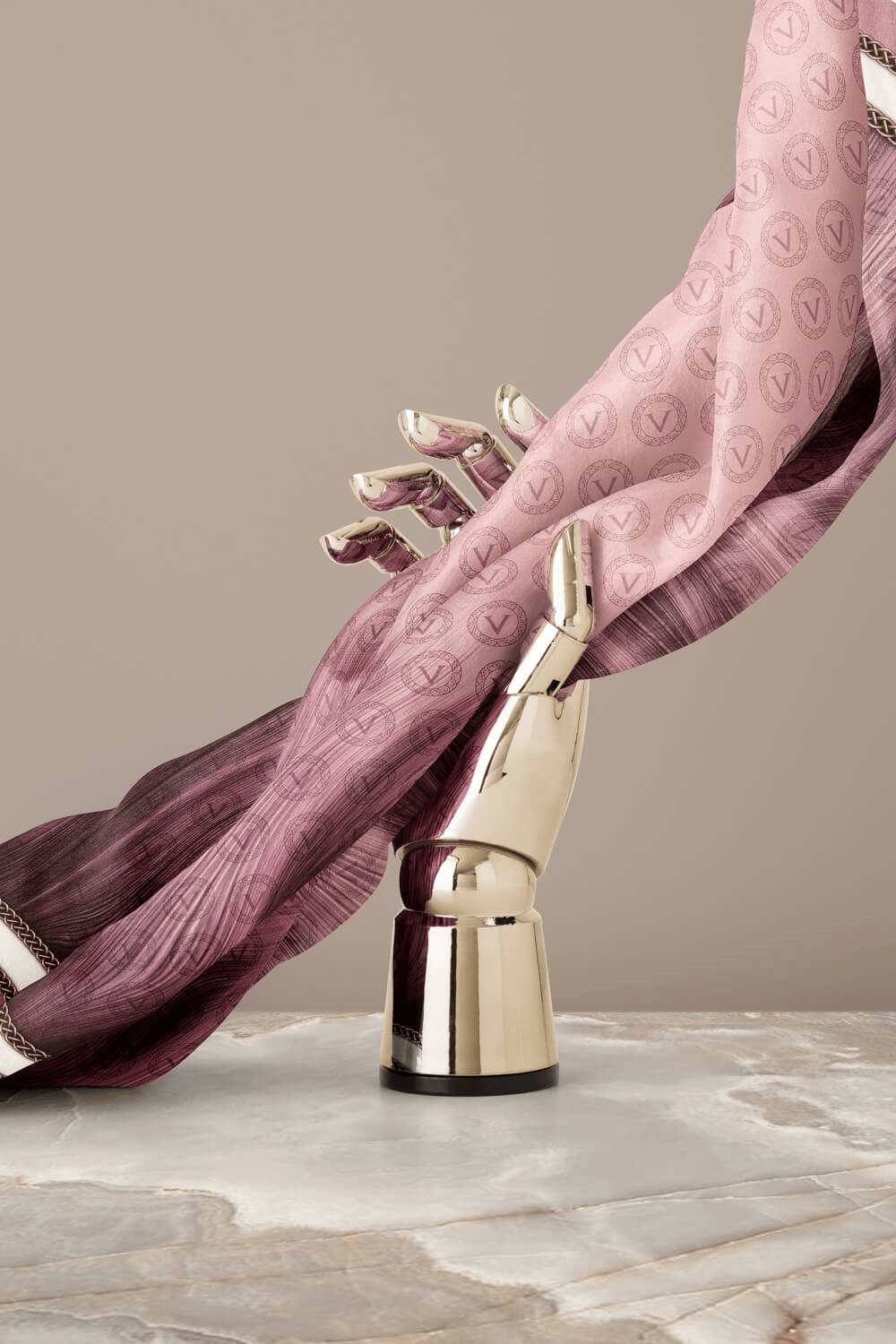 100% Twill İpek Monogram Desenli Pudra Renkli 90x90 Dikim Şekli : El Dikişi Eşarp