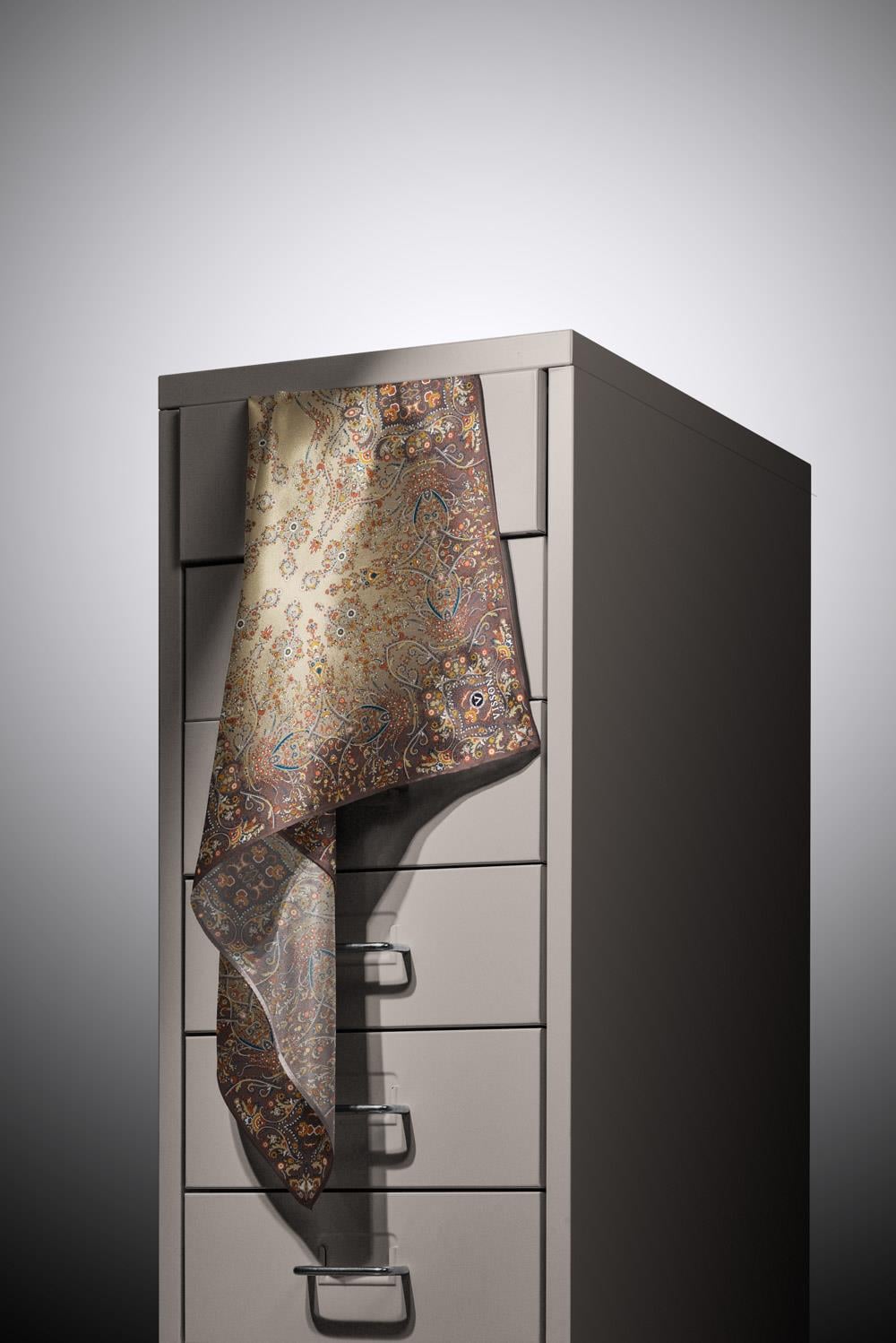 %100 Twill İpek Şal Desenli Kahverengi Renkli 90x90 Eşarp Dikim Şekli : El Dikişi