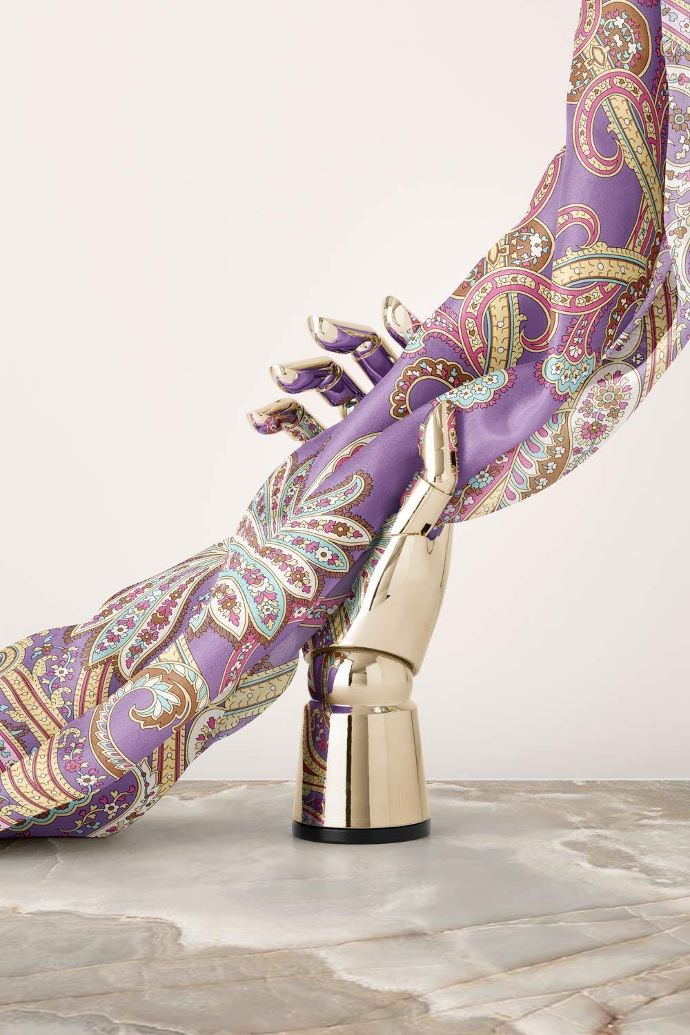 %100 Twill İpek Şal Desenli Lila Renkli 90x90 Eşarp Dikim Şekli : El Dikişi