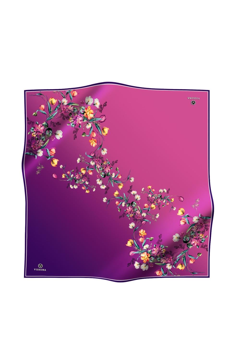 %100 Twill İpek Sonsuz Çiçek Desenli Mürdüm Renkli 90x90 Eşarp Dikim Şekli : El Dikişi (60849-7)