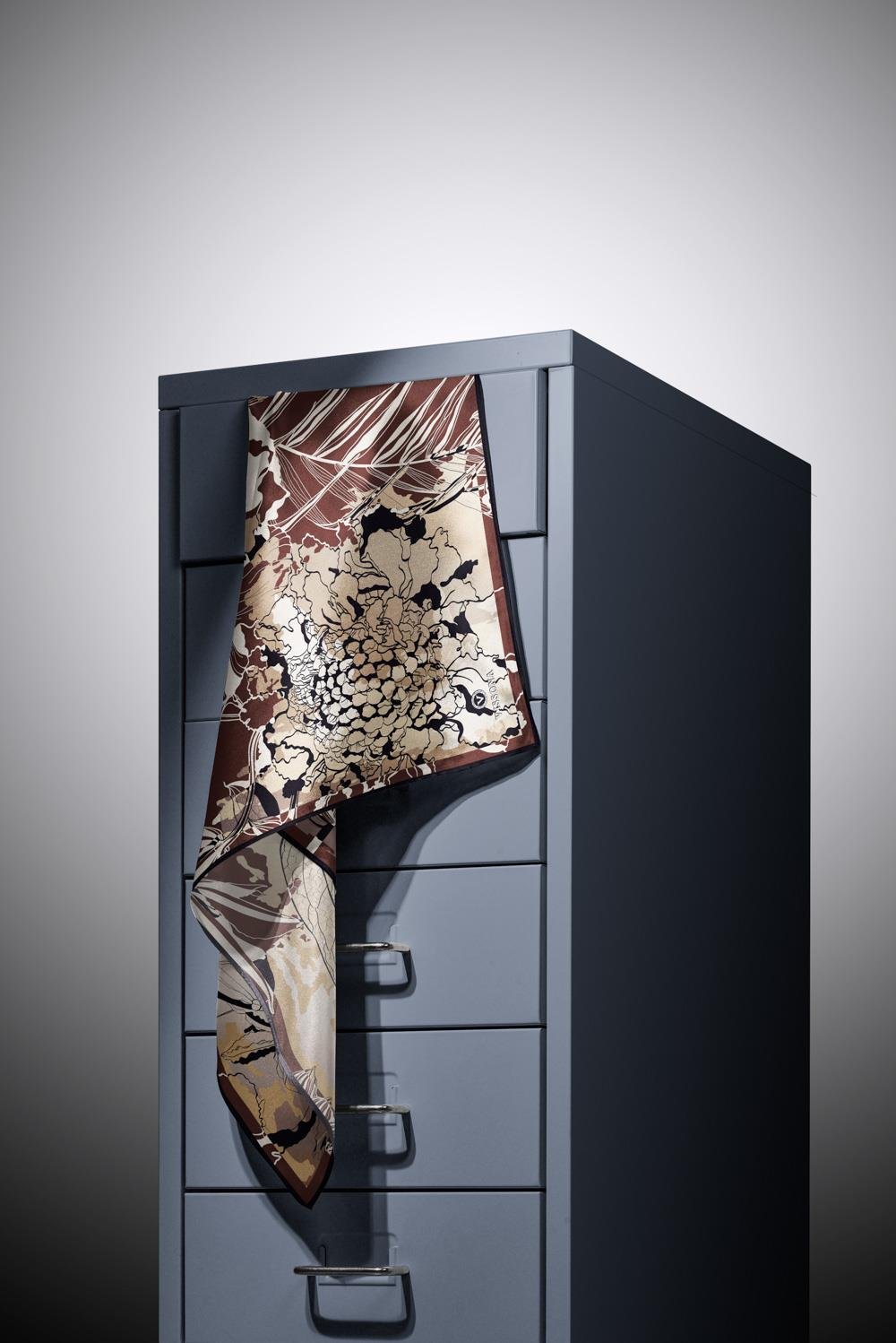 %100 Twill İpek Yaprak Desenli Kahverengi - Bej Renkli 90x90 Eşarp Dikim Şekli : El Dikişi