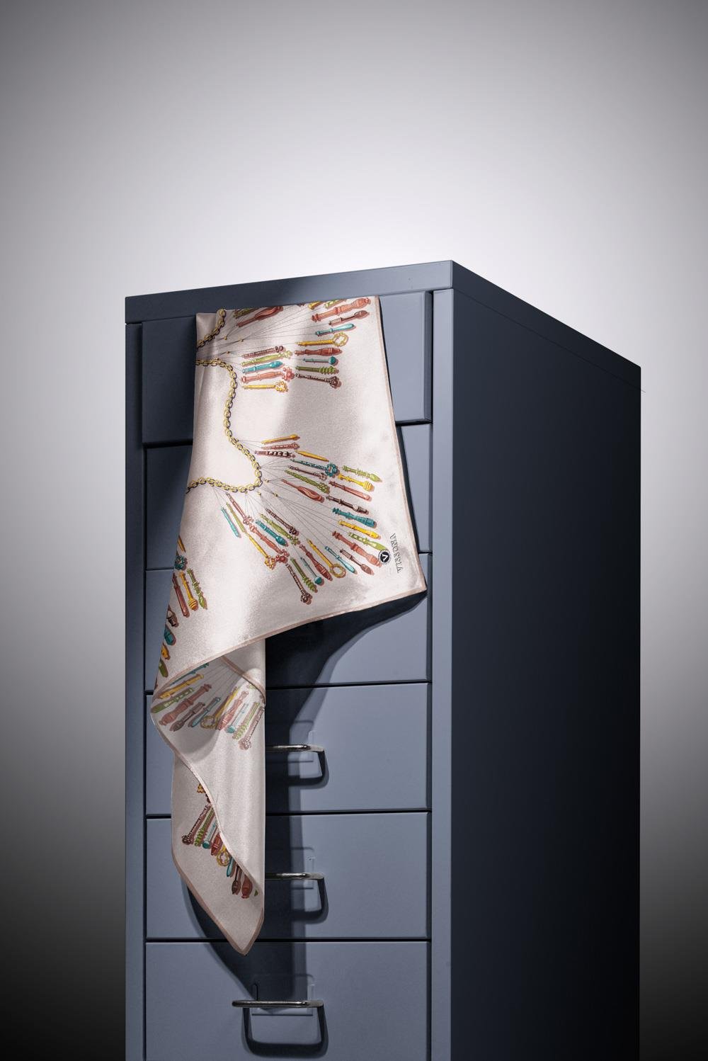 %100 Twill İpek Zincir Desenli Krem Renkli 90x90 Eşarp Dikim Şekli : El Dikişi