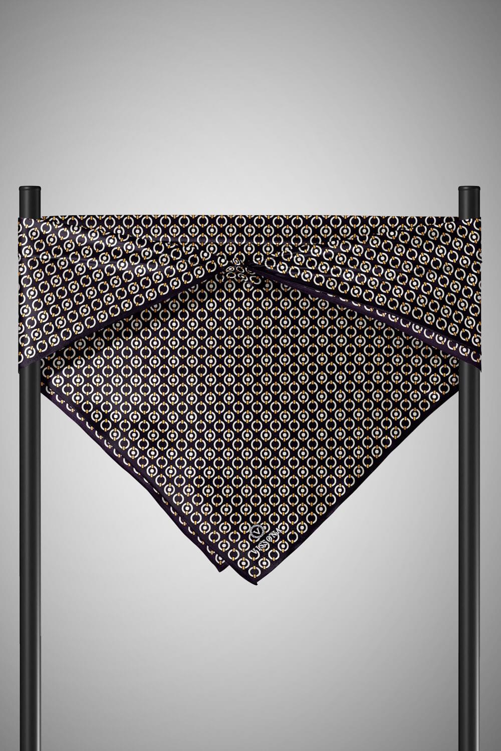 %100 Twill İpek Zincir Desenli Siyah - Krem Renkli 90x90 Eşarp Kenar Dikiş Şekli El Dikişli