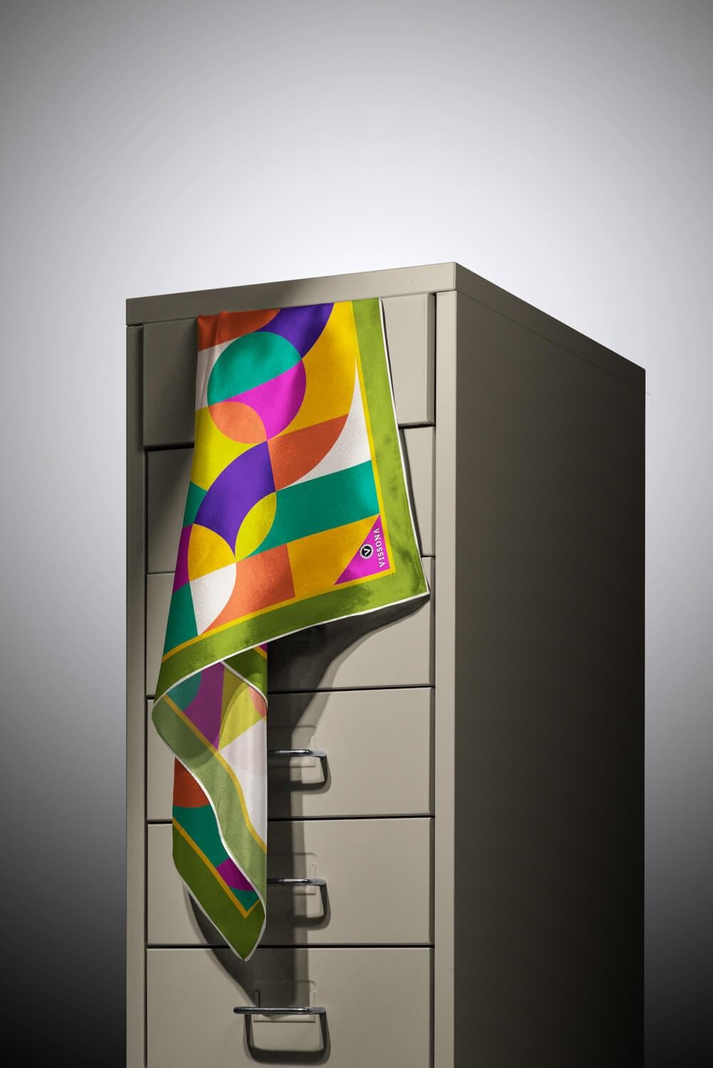 %100 Twill Renk Bloklu Çizgili Desenli Haki - Mor Renkli 90x90 Eşarp Dikim Şekli: El Dikişii (60331-12)