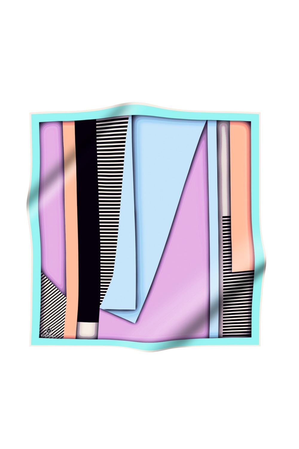 %100 Twill Renk Bloklu Çizgili Desenli Pudra - Bebe Mavisi Renkli 90x90 Eşarp Dikim Şekli: El Dikişii
