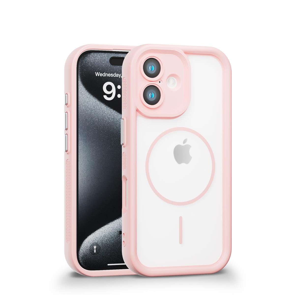 iPhone 16 Plus Uyumlu Kamera Korumalı Magsafe Wireless Şarj Özellikli Mat Silikon Pembe renkli Silikon Telefon Kılıfı (61033-48)