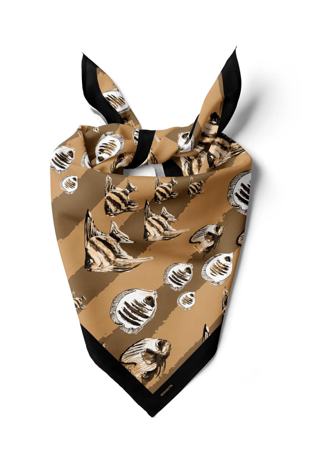 Kadın Balık Desenli Bandana 50x50 Kahverengi DG0422-22 (8681225129992)