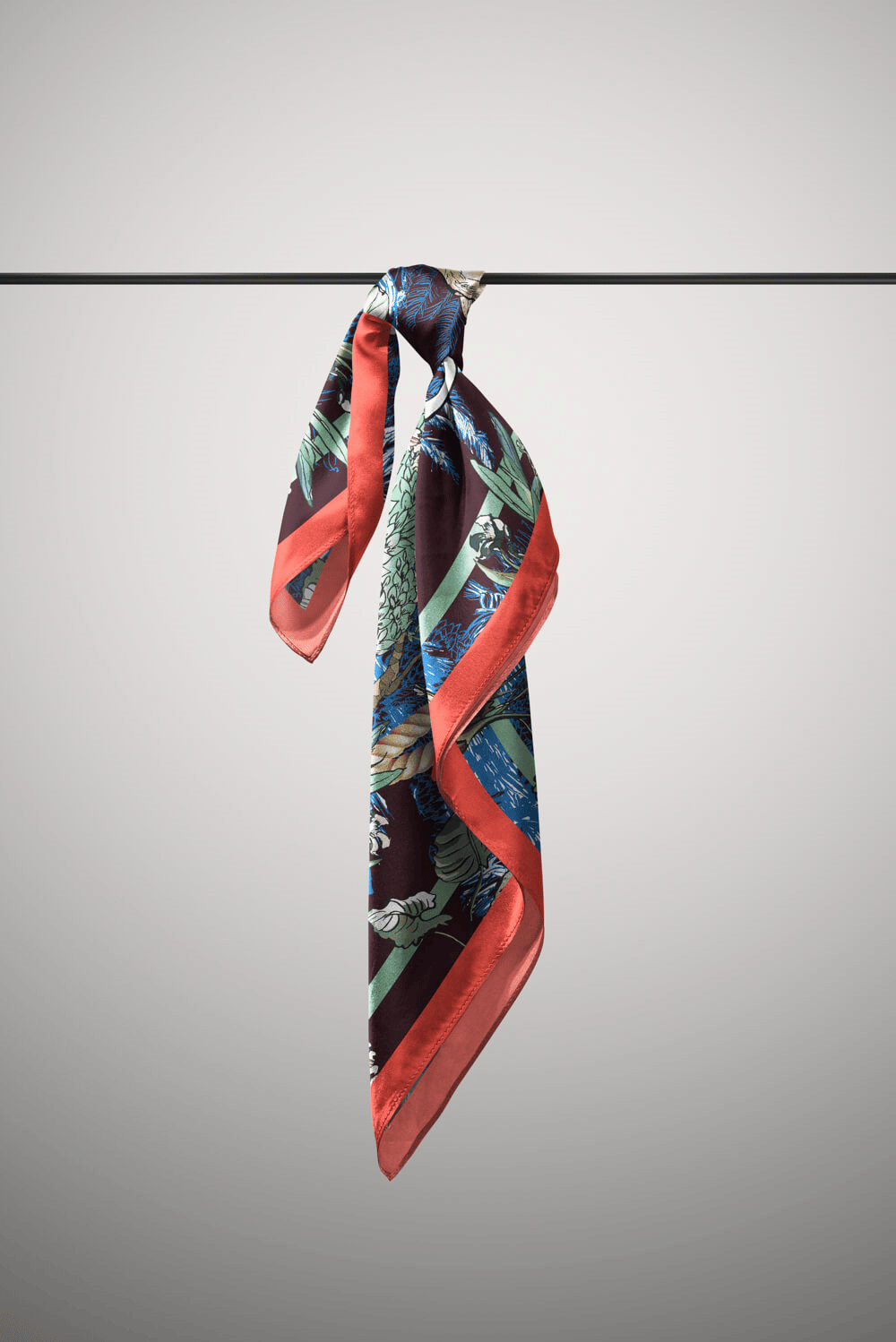 Kadın Beyaz Mat Yeşil Leylek  Desenli 50x50 Bandana HYL DG01132-22