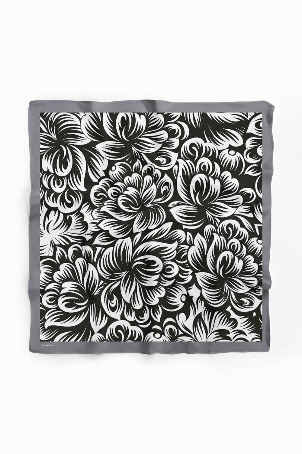 A80 Kadın Çiçek Desenli Bandana 50x50 Siyah Beyaz DG0409-22 (8681225129862)