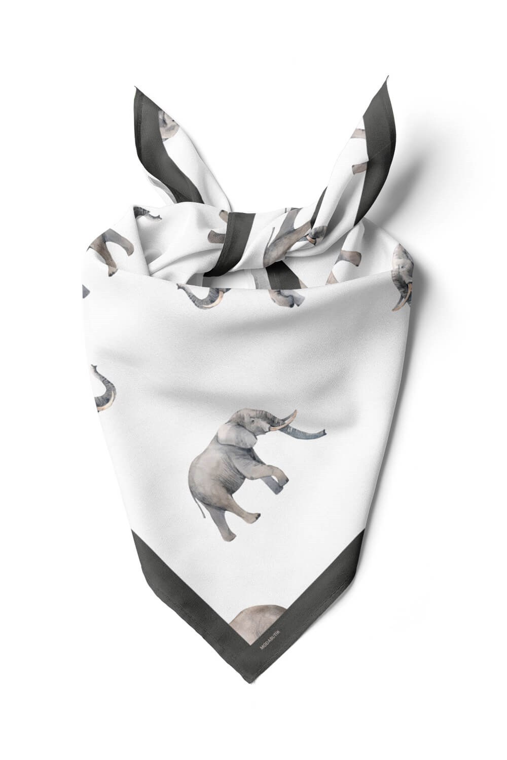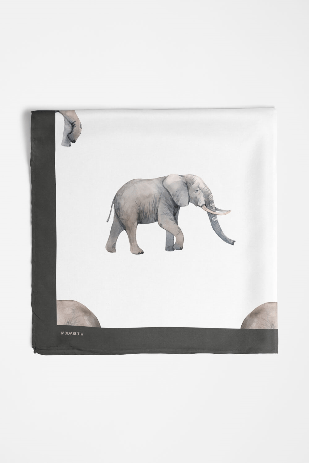 Z10 Kadın Fil Desenli Bandana 50x50 Gri Beyaz DG0492-22 Snz (8681225130691)